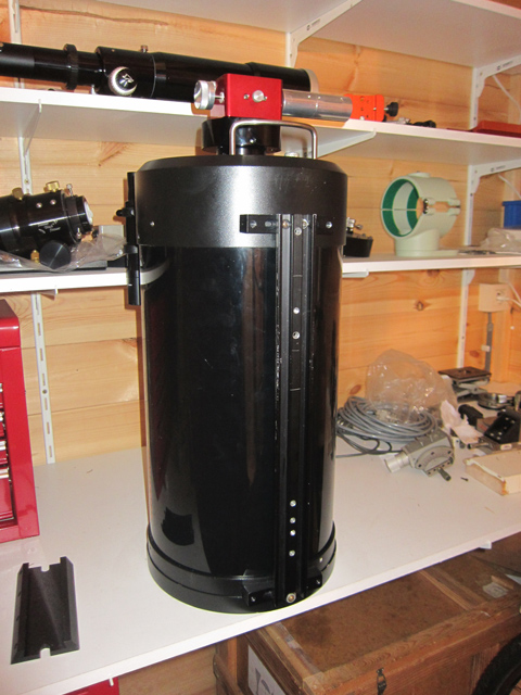 A few weeks ago I started using my C9.25 SCT telescope for solar observing. Of course I need a filter to protect eyes and gear from the enormous amount of energy this telescope is gathering (about 1200x). This filter is a Baader solar filter foil and lets about 1/1000 of the light pass through. Solar spots and granulation become visible. I posted first results with this filter earlier this month. One big disadvantage for the C9.25 though: this telescope is one big black closed tube, soaking up all the sunshine, creating thermal currents inside the tube. This air vibration ruins the quality of the image. That’s why I decided to fix the problem a few days ago. I purchased some radiator reflecting foil at the local DIY and wrapped my C9.25 with it. The difference is clearly visible (telescope and sunspots).