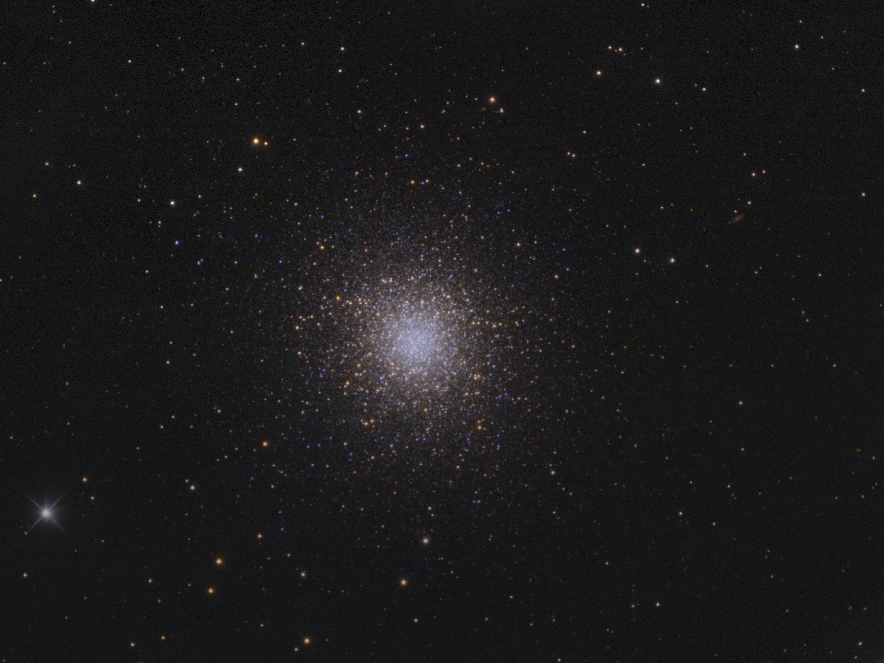 A few nights ago I was capturing luminance frames of M106 and NGC3718. After a session of a few hours and with M106 slightly past zenith, instead of doing a meridean flip, I decided to point the telescope to a well known object of the Spring sky. This object has been photographed probably more than the number of stars it contains but I still find M13 to be an interesting target to image.