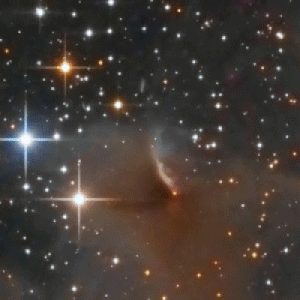 LBN 468 is a nebula 1,600 light years away from earth in the constellation Cepheus. One of the most interesting parts of the nebula is the bright part on the top left. This nebula is called Gyulbudaghian’s Nebula. This bipolar reflection nebula is generated by shock waves from a contracting protostar, PV Cephei. The nebula changes its shape and luminosity very fast, as illustrated below in the small animation.