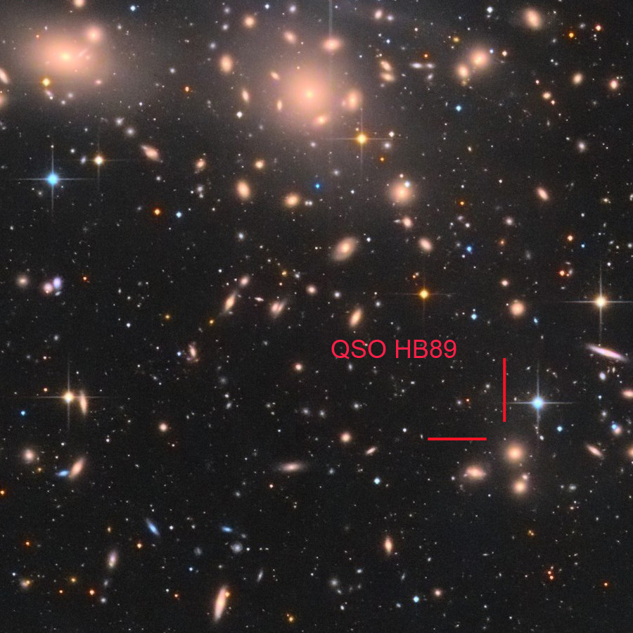 On the cropped picture below there is (to my knowledge) the farthest object I managed to capture so far: QSO [HB89] 1256+280. With a red shift of 2.66, this quasar is at a distance of about 11.3 +/-1 billion light years. When the light of this quasar left its source, the universe was at a young age of 2 bilion years and we still had to wait 7 billion years for our solar system to be born.