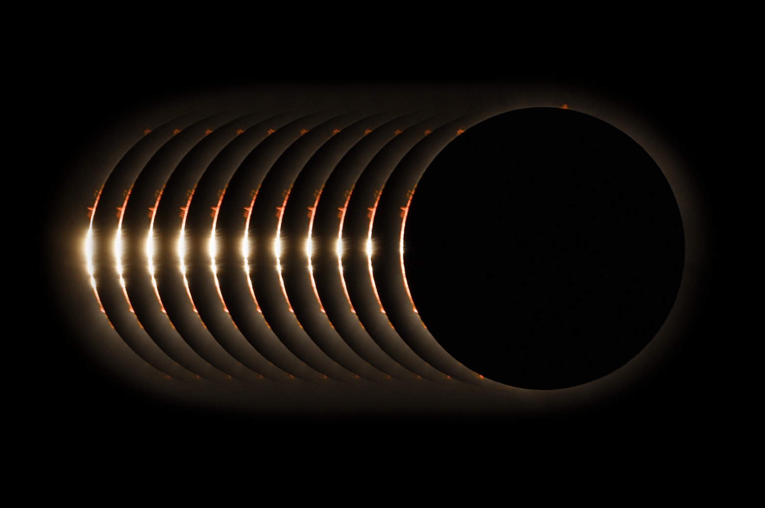 Capturing Baily’s Beads requires perfect timing. This picture shows a mosaic of 11 frames, captured approximately every second. It shows the evolution of this stunning visual effect during a period of 10 seconds.