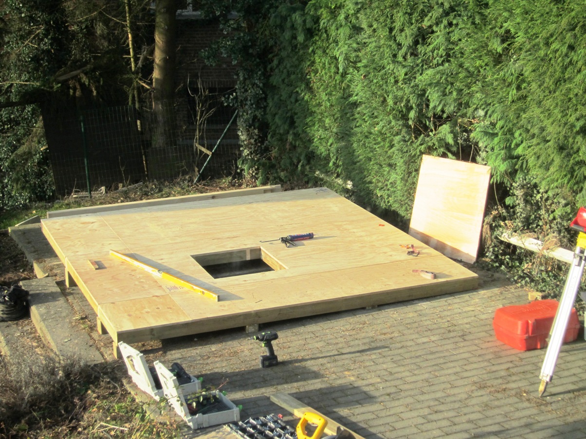 Levelling the 3x3m floor of the observatory.