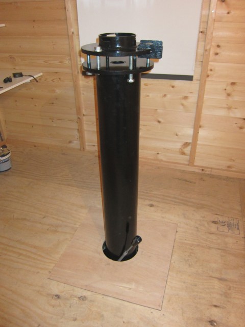 Another milestone: the pier is put in place. A 200x10x1400mm steel tube with double 3-point flange for easy alignment. The tube is filled with sand for improved vibration damping.